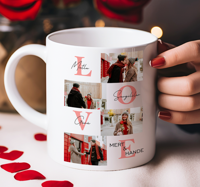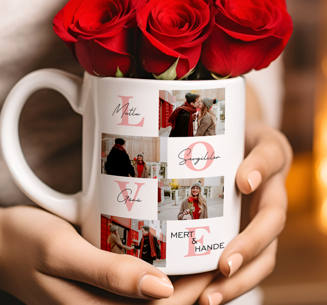 Sevgililer Günü Hediyesi Love Temalı Kişiye Özel Kupa Baskısı